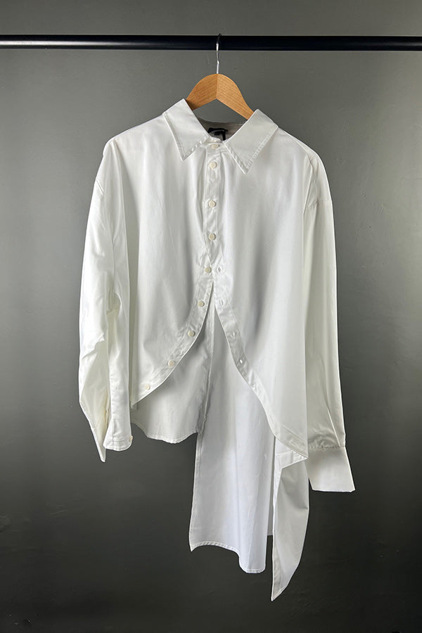 This shirt offers endless versatility and style options, perfect for wearing alone or as a layering piece. Featuring multiple button holes, it can be worn in a variety of ways - buttoned up with a gathered front, or left unbuttoned for a cropped look.